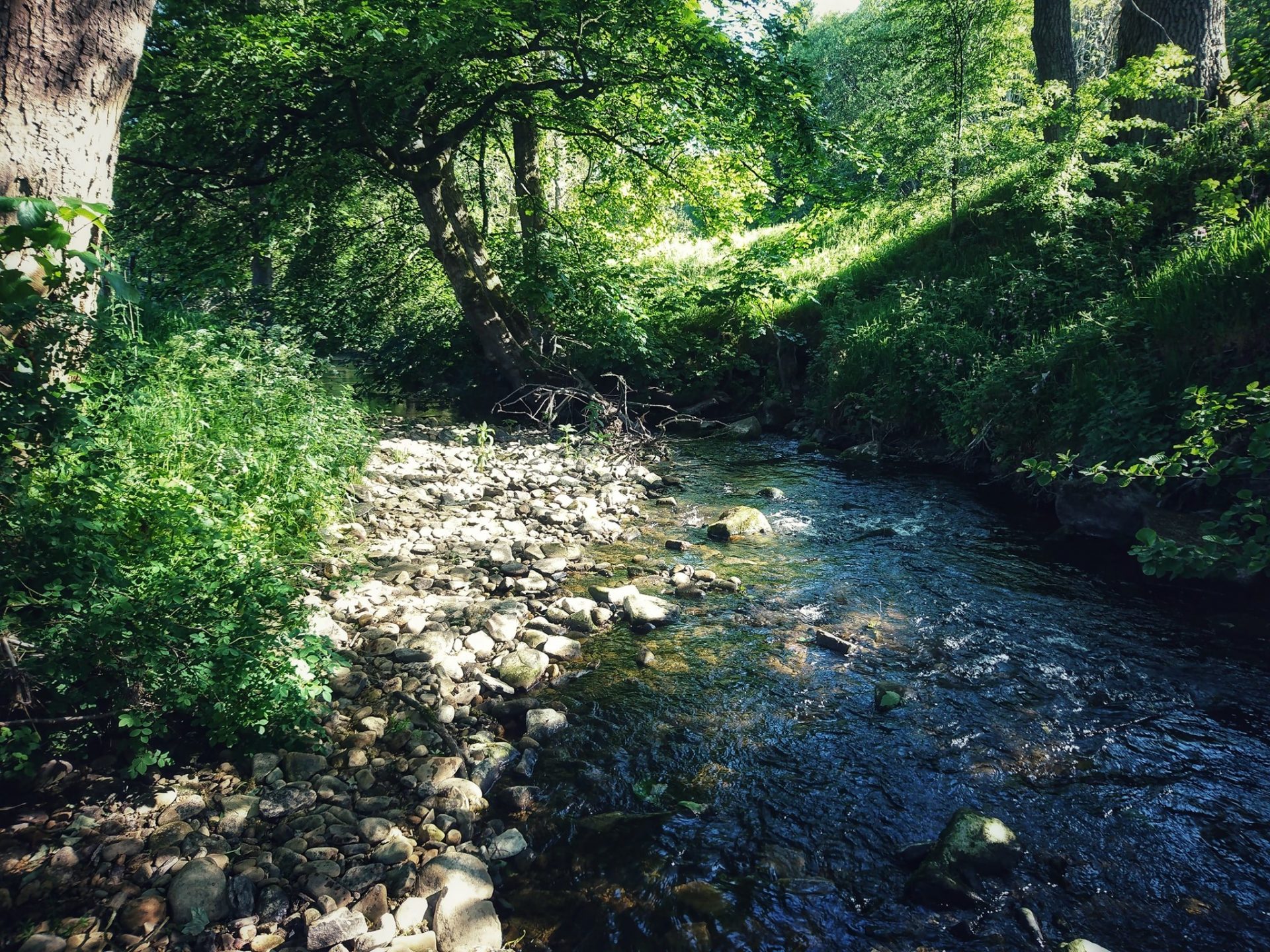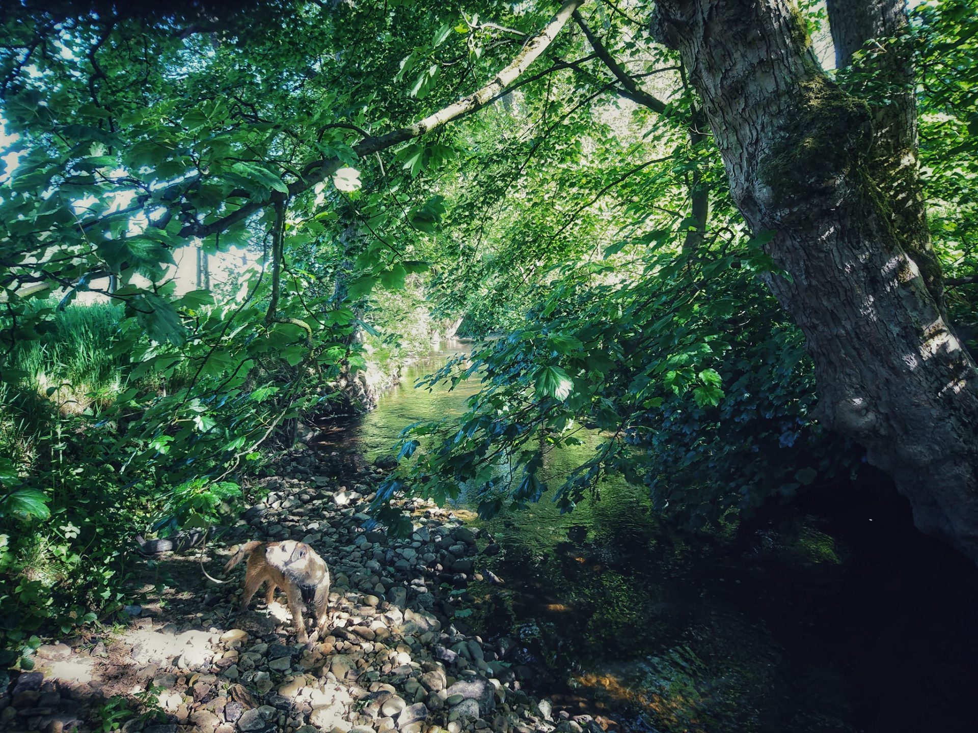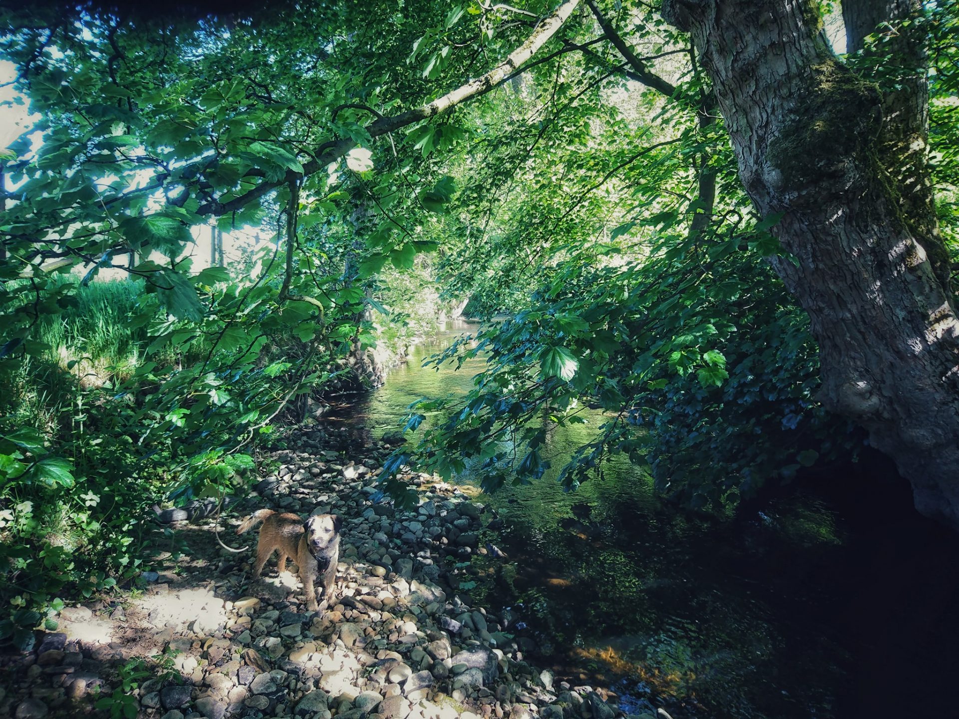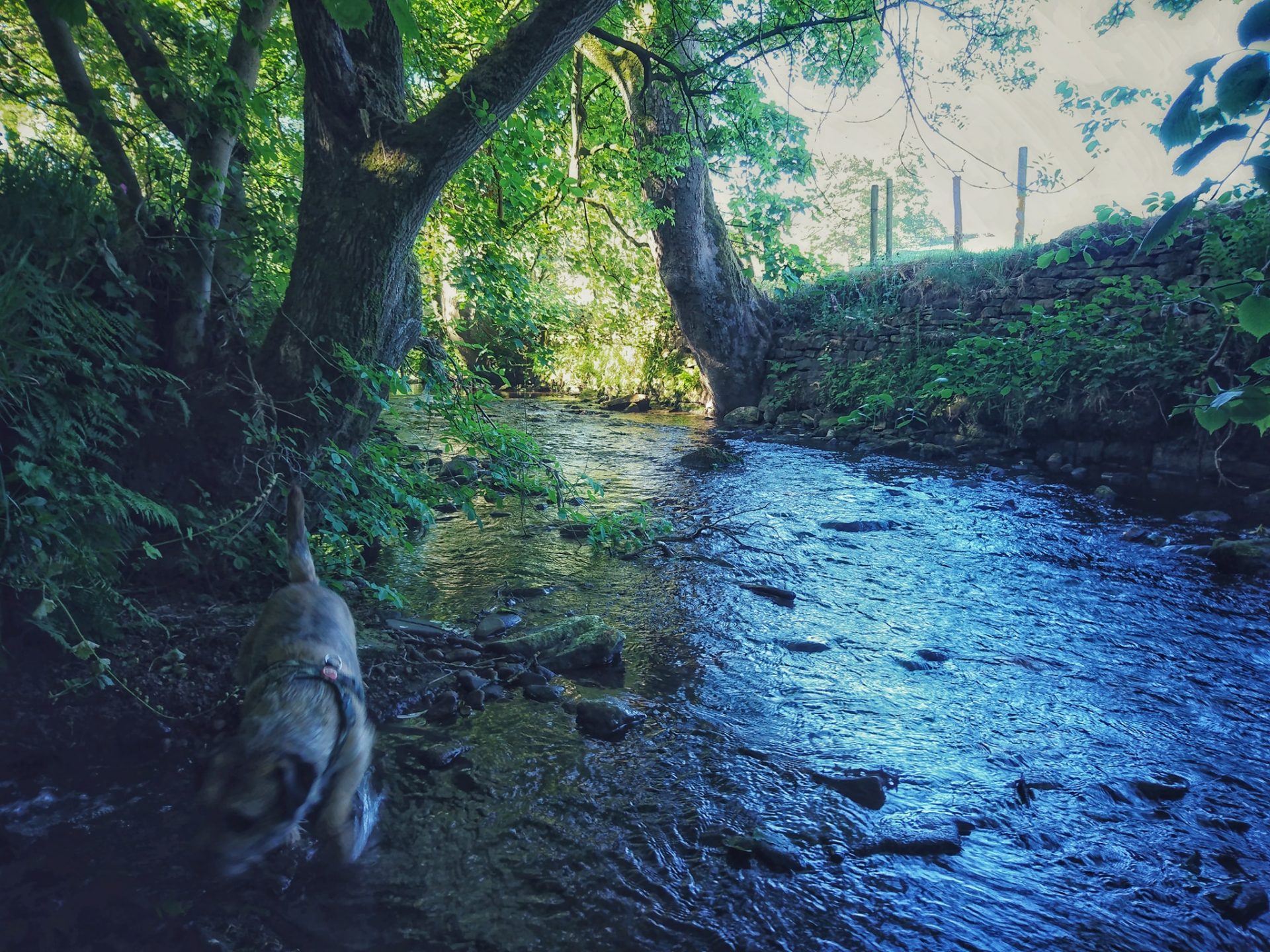 I took my human for a walk alongside Bridgehouse Beck so that he could mess about in the water looking for pottery shards.