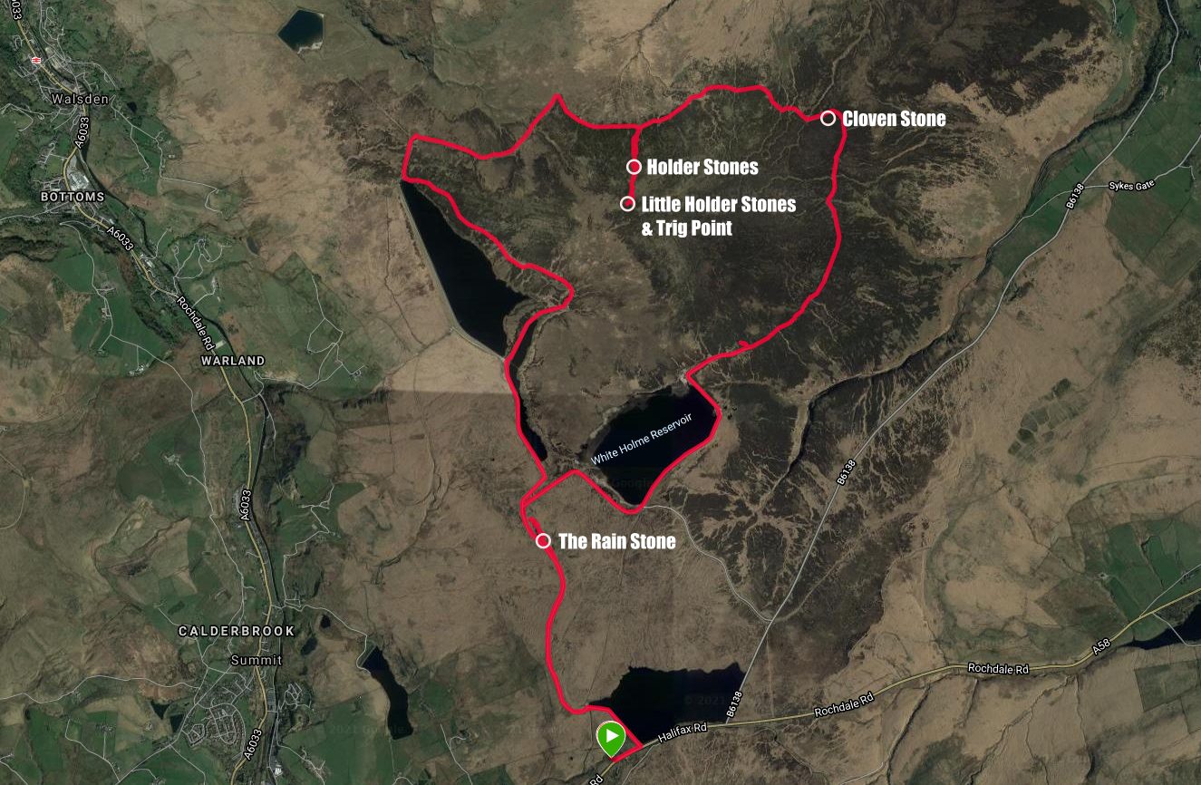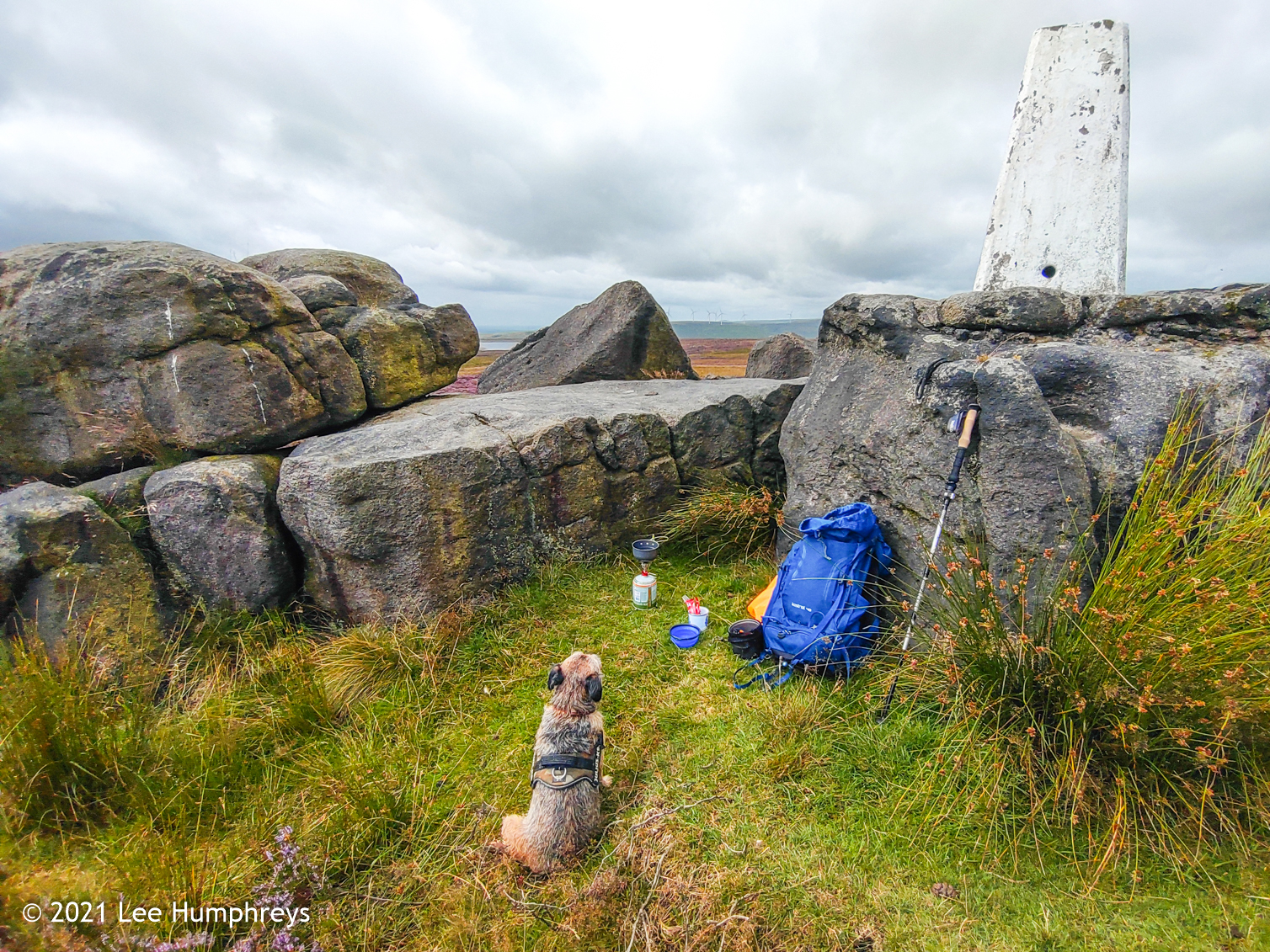 This hike was to check out a possible wild camping spot somewhere in the vicinity of the Holder Stones between Cragg Vale and Walsden and to bag the trig point at Little Holder Stones which stands at 420m above sea-level. Along the way we stopped again at the Rain stone - a poem by Simon Armitage carved into a rock face and one of the six Stanza Stones.